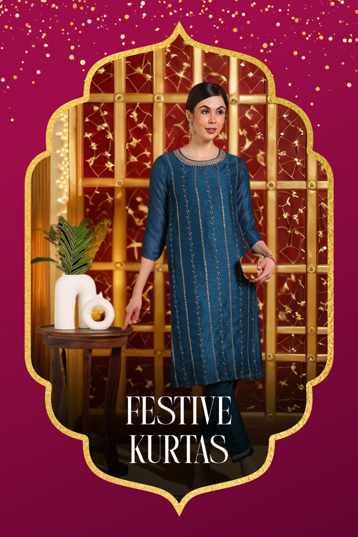 Blue Silk Blend Ikat Printed Straight Kurta Trousers With Dupatta SKSKD3106