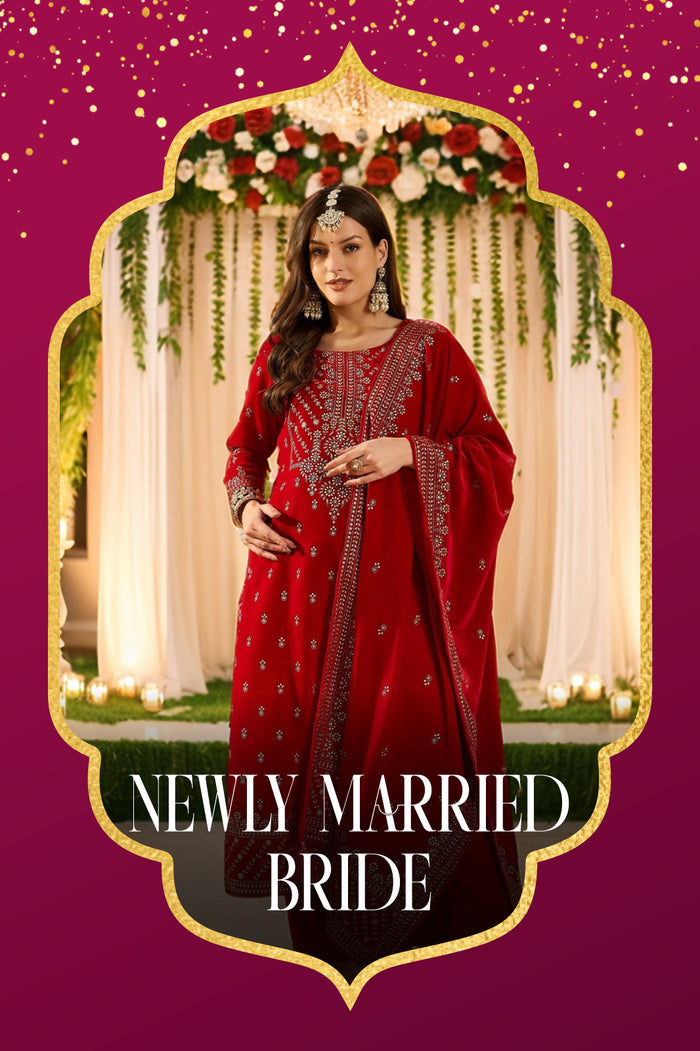 Red Viscose Rayon Floral Embroidered Straight Kurta Trousers With Dupatta PKSKD3056