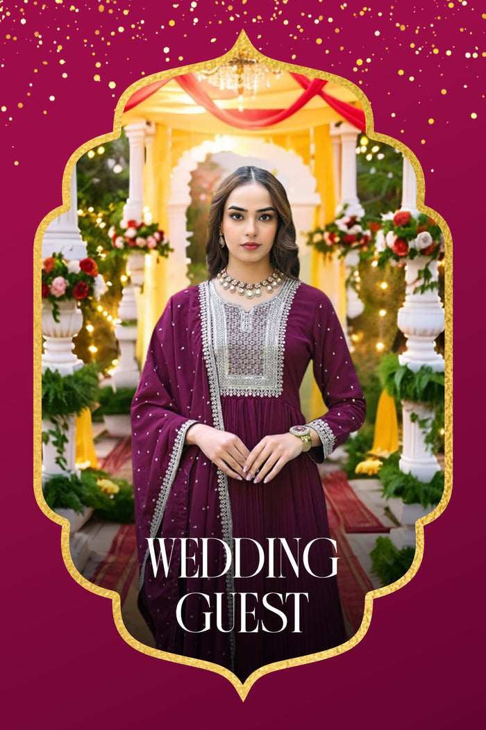 Purple Silk Blend Floral Embroidered Straight Kurta Trousers With Dupatta SKSKD3119