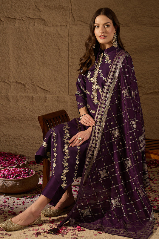 Purple Silk Blend Solid Embroidered Coord Sets VCORD1105