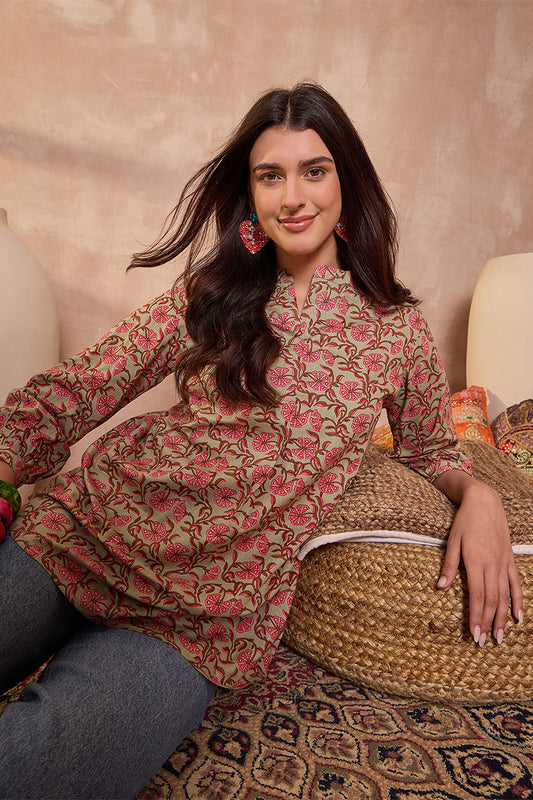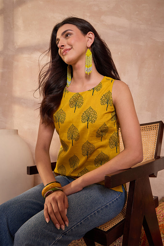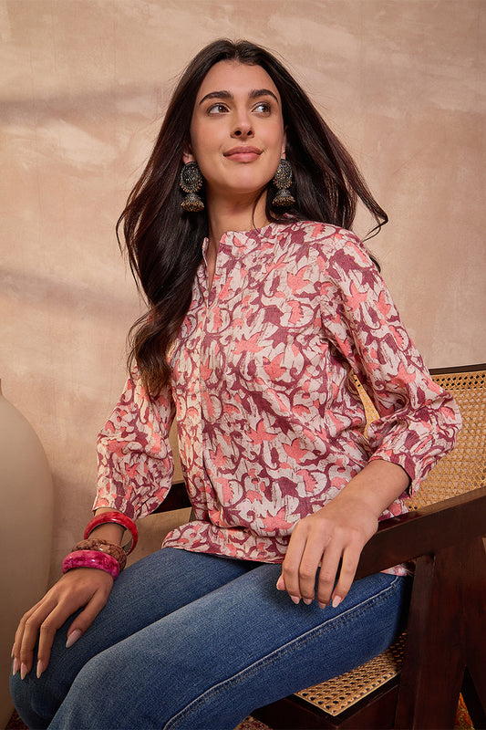 Beige Cotton Ethnic Motifs Printed Top VT1430