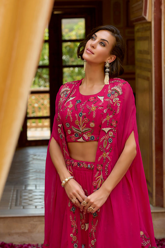 Pink Silk Blend Embroidered Straighit Top Skirt With Shrug PKSKD2867