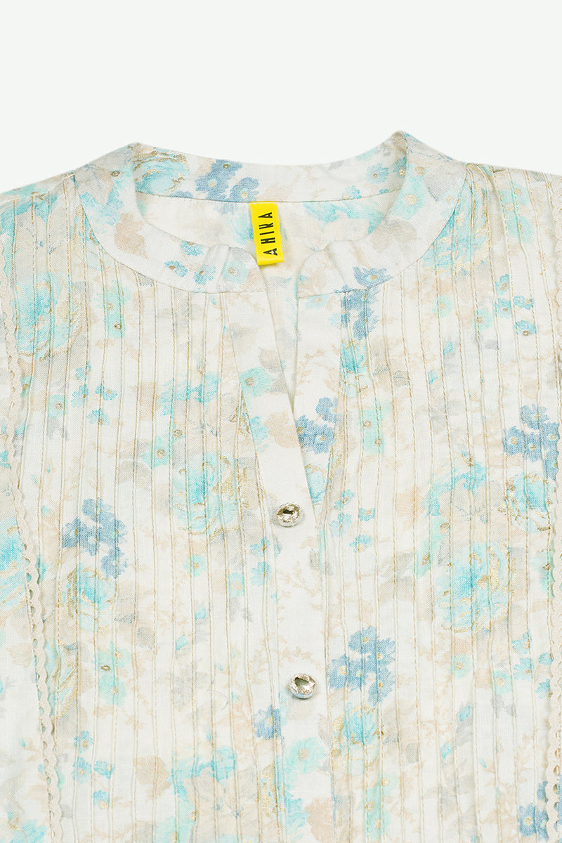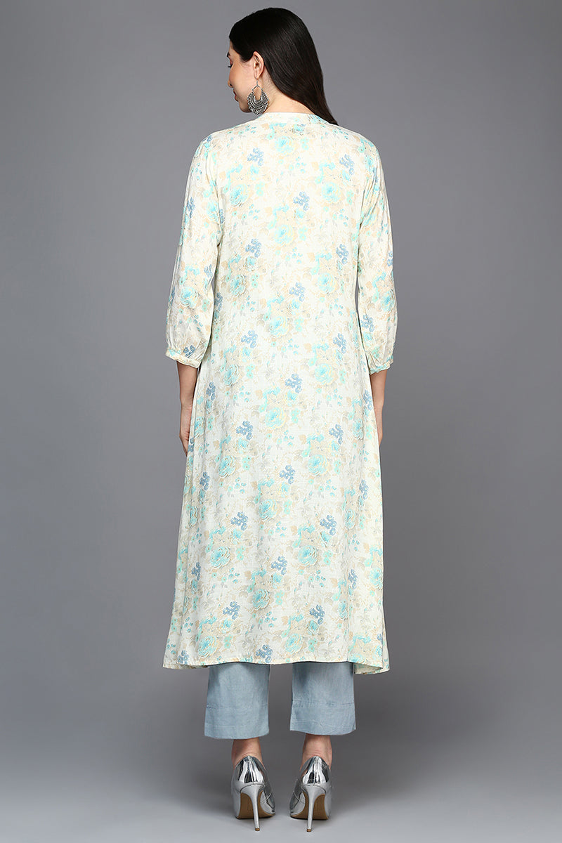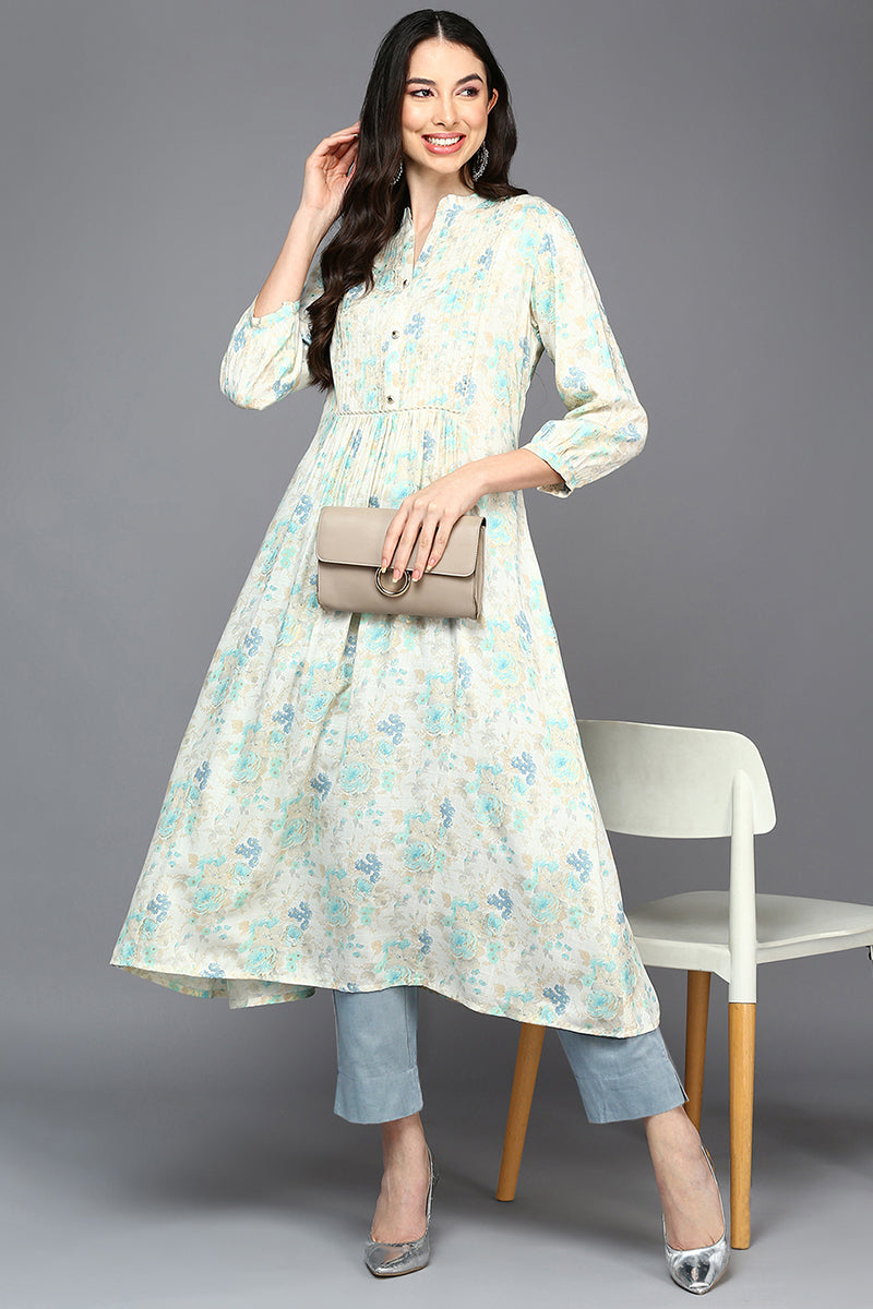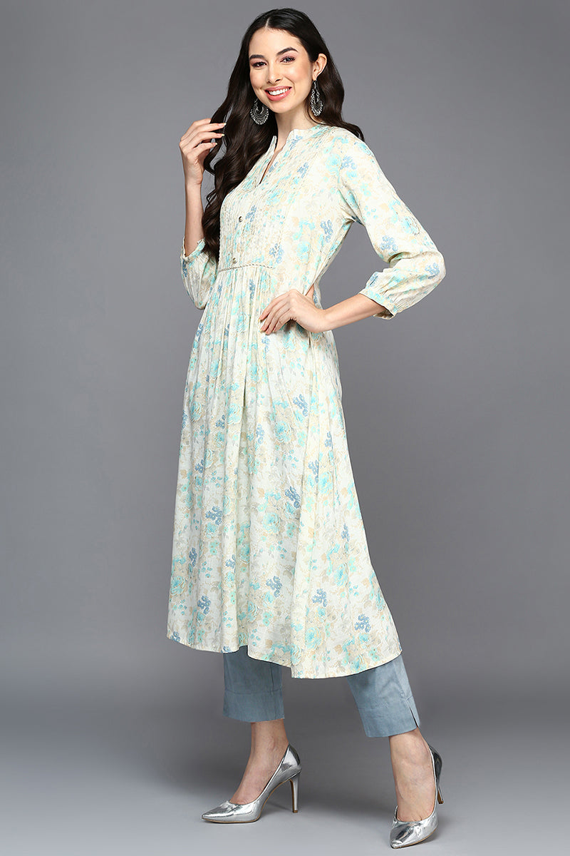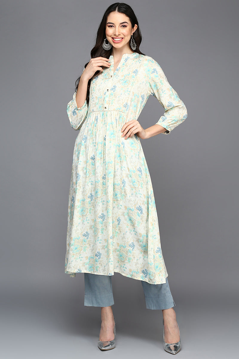 Off White Cotton Blend Ethnic Motifs A-Line Kurta VCK9418