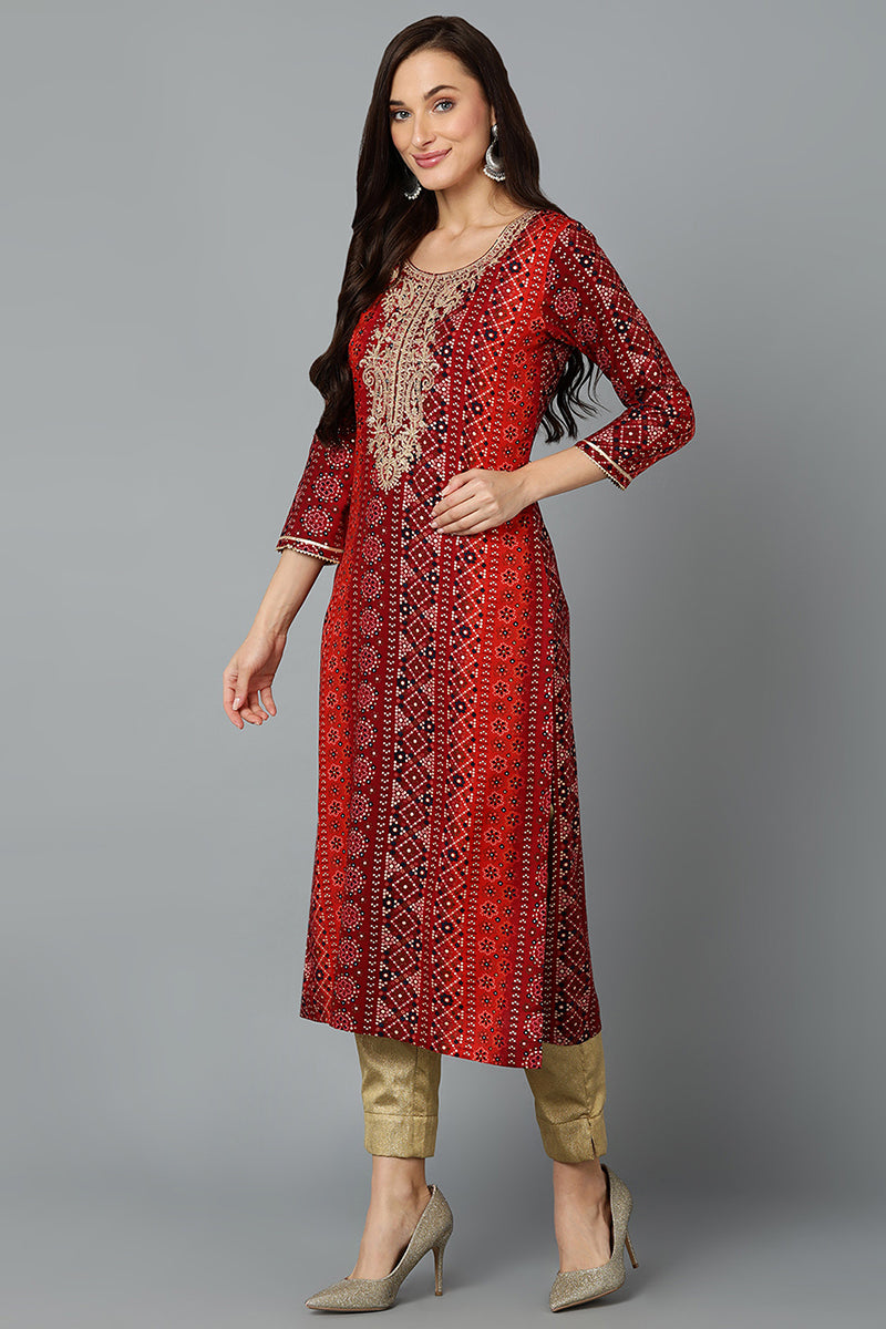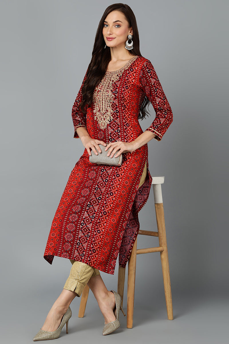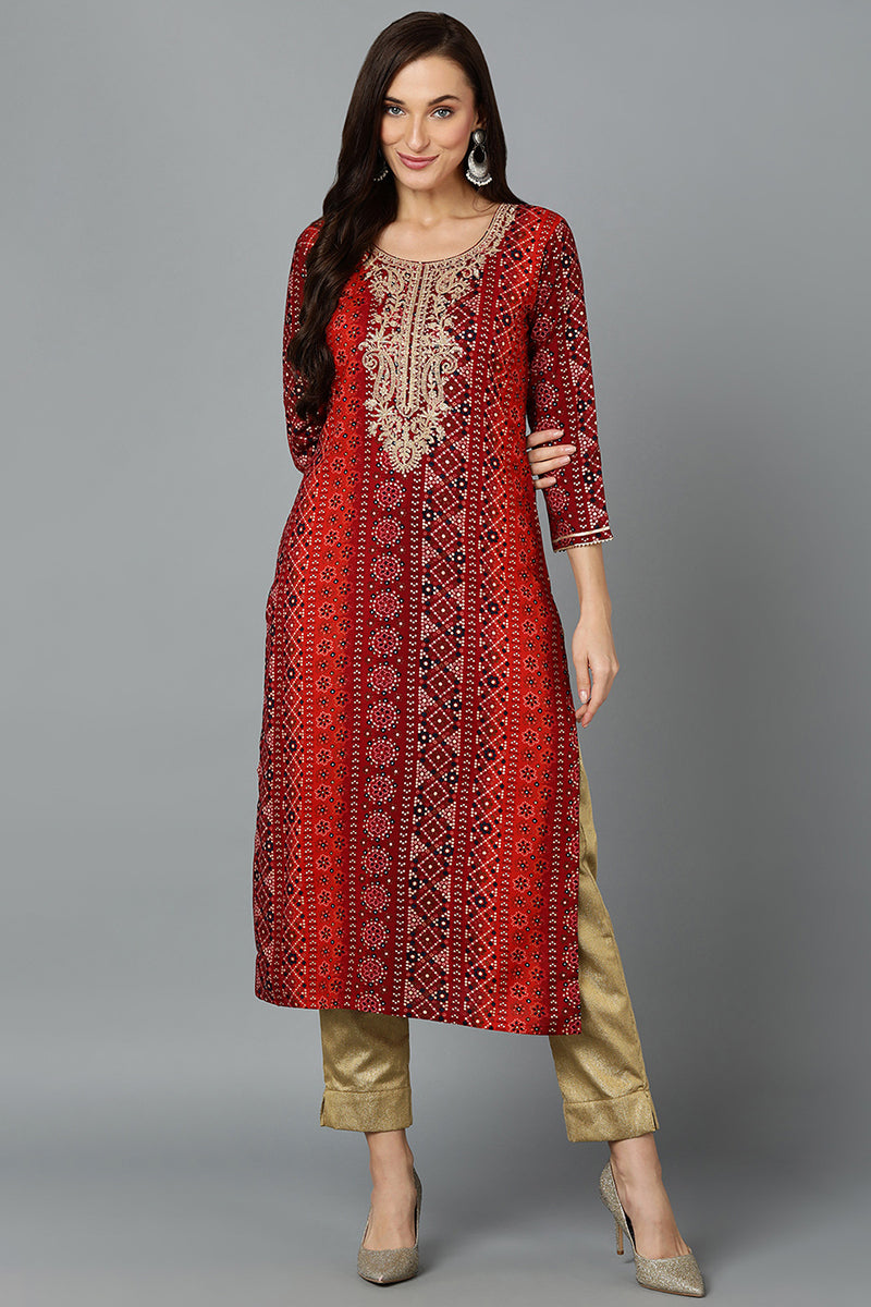 Cotton Blend Maroon Printed Straight Kurta VCK9238