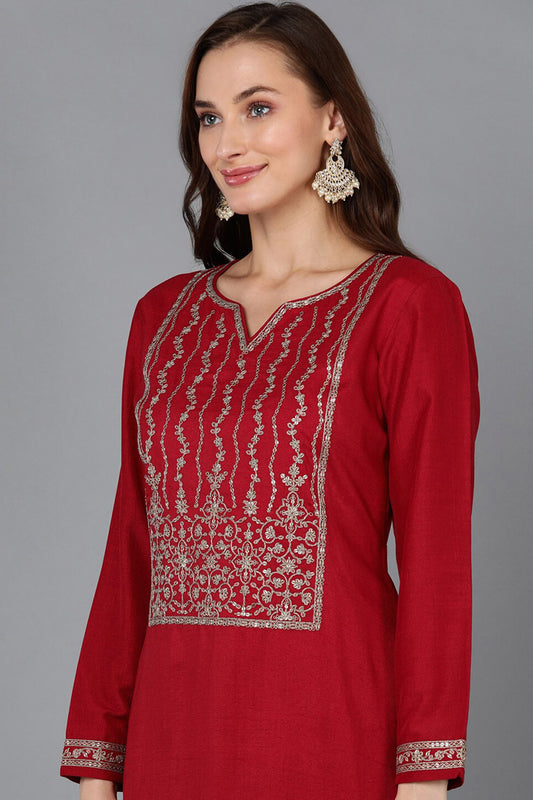 Red Silk Blend Straight Kurta VCK9116