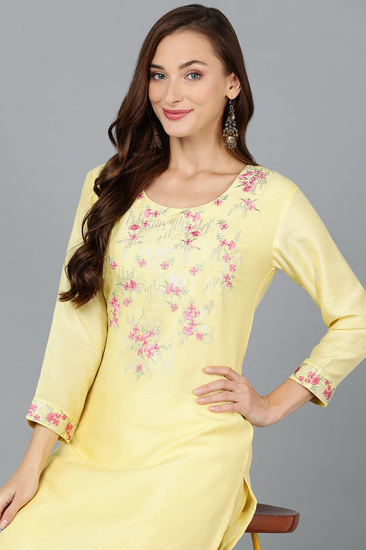 Yellow Silk Blend Straight Kurtas VCK9188