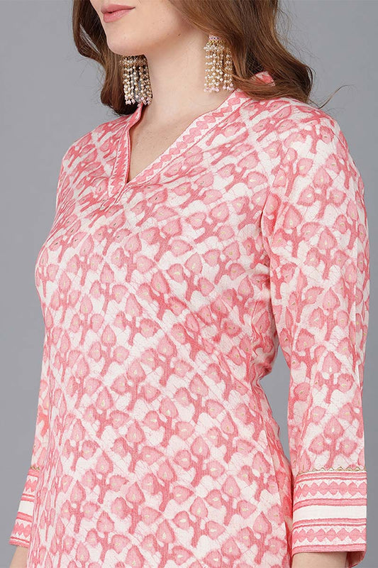 Peach Cotton Blend Straight Suit Set VKSKD1526