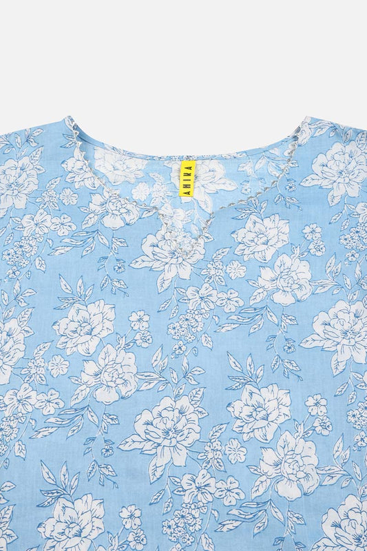 Blue Rayon Blend Floral Straight Kurta Pant With Dupatta VKSKD1716