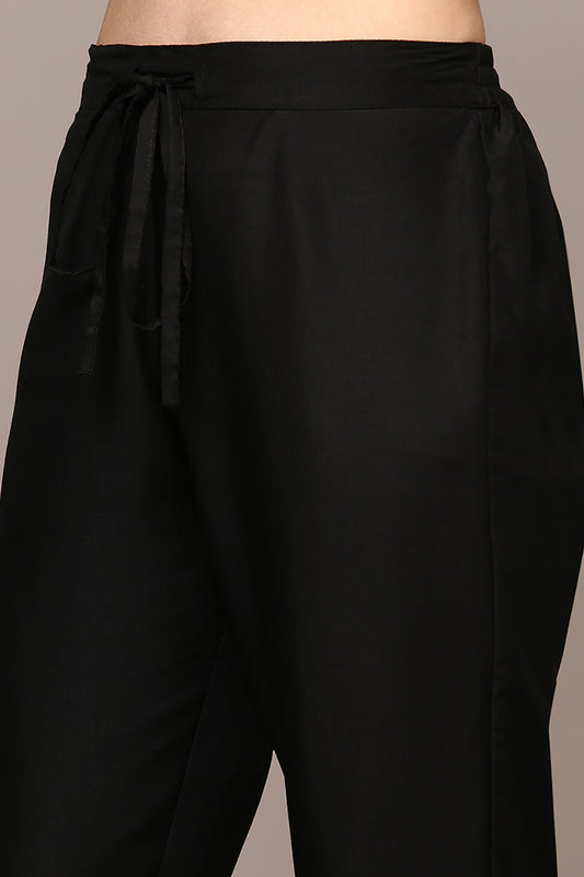 Black Poly Chanderi Floral Straight Suit Set PKSKD1975