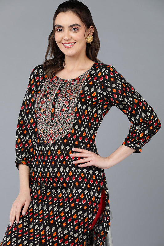 Cotton Black Ikat Printed Straight Kurta VCK9381