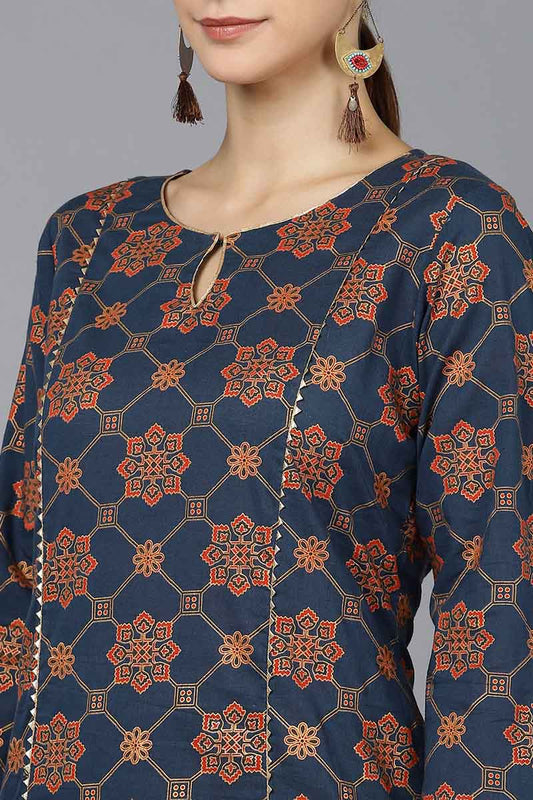 Blue Pure Cotton Anarkali Suit Set VKSKD1538