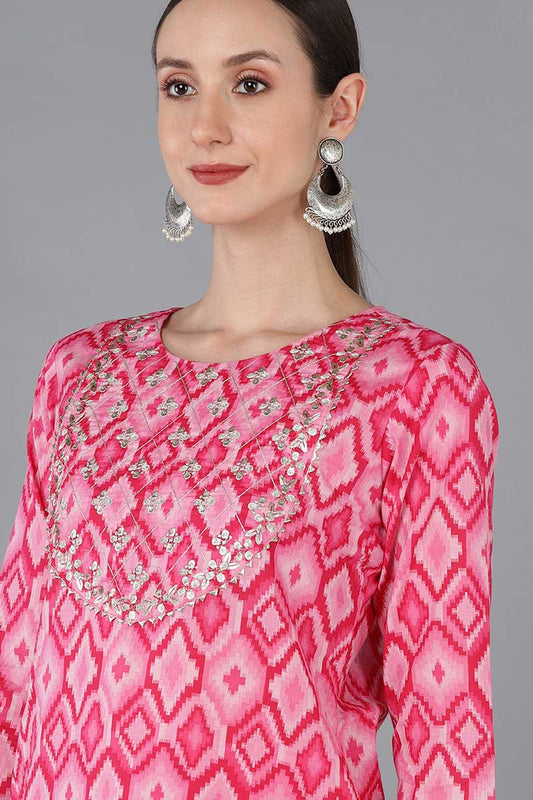 Pink Pure Cotton Gotta Patti Straight Suit Set VKSKD1674