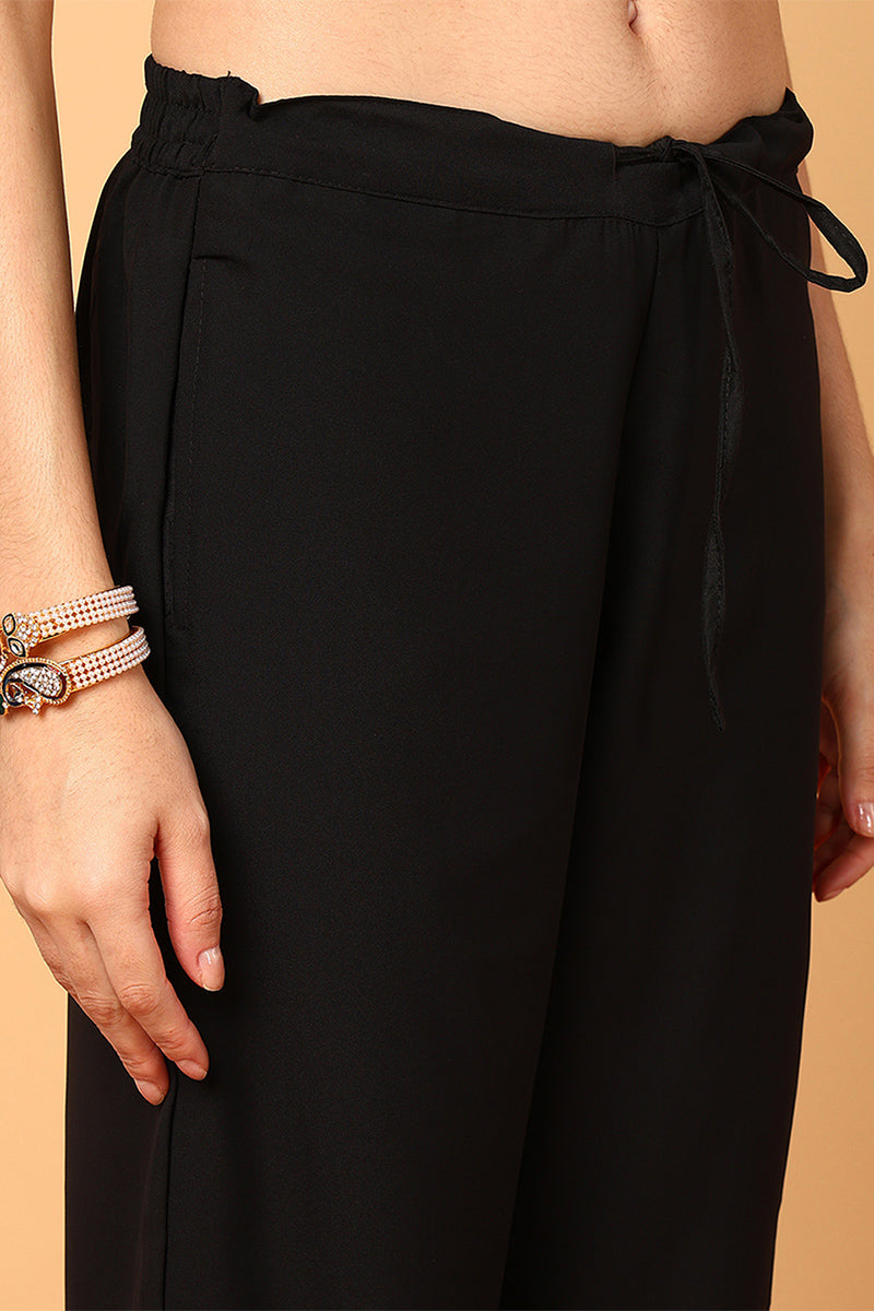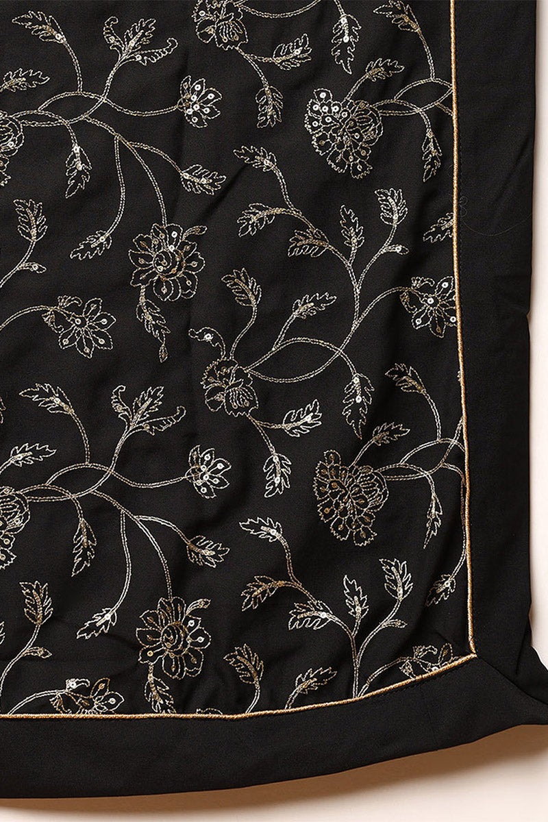 Black Poly Georgette Solid Embroidered Straight Suit Set PKSKD1875