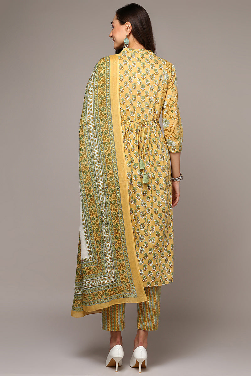 Yellow Pure Cotton Printed Flared Suit Set VKSKD1971
