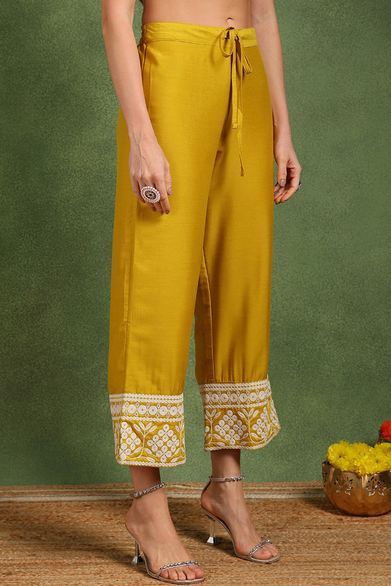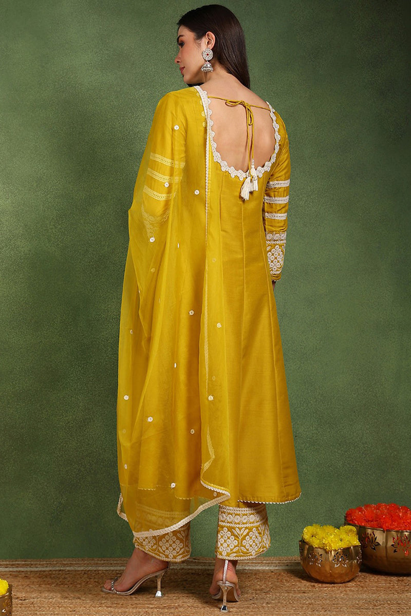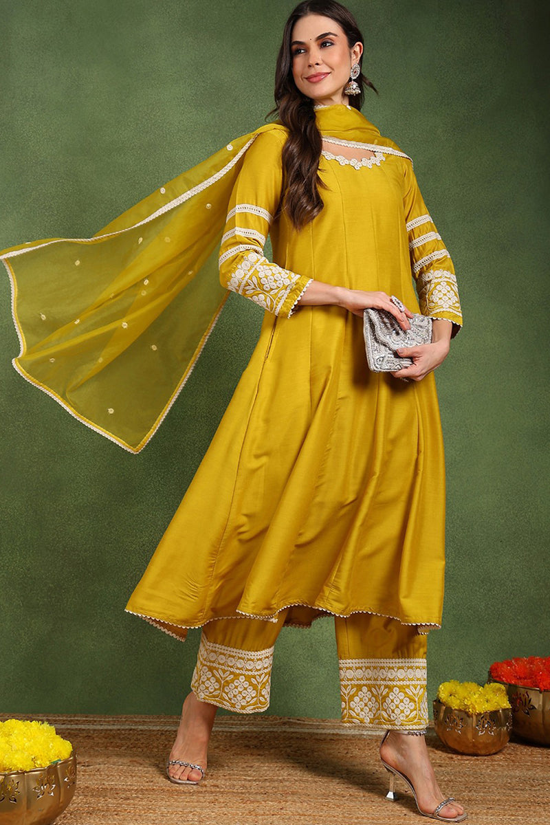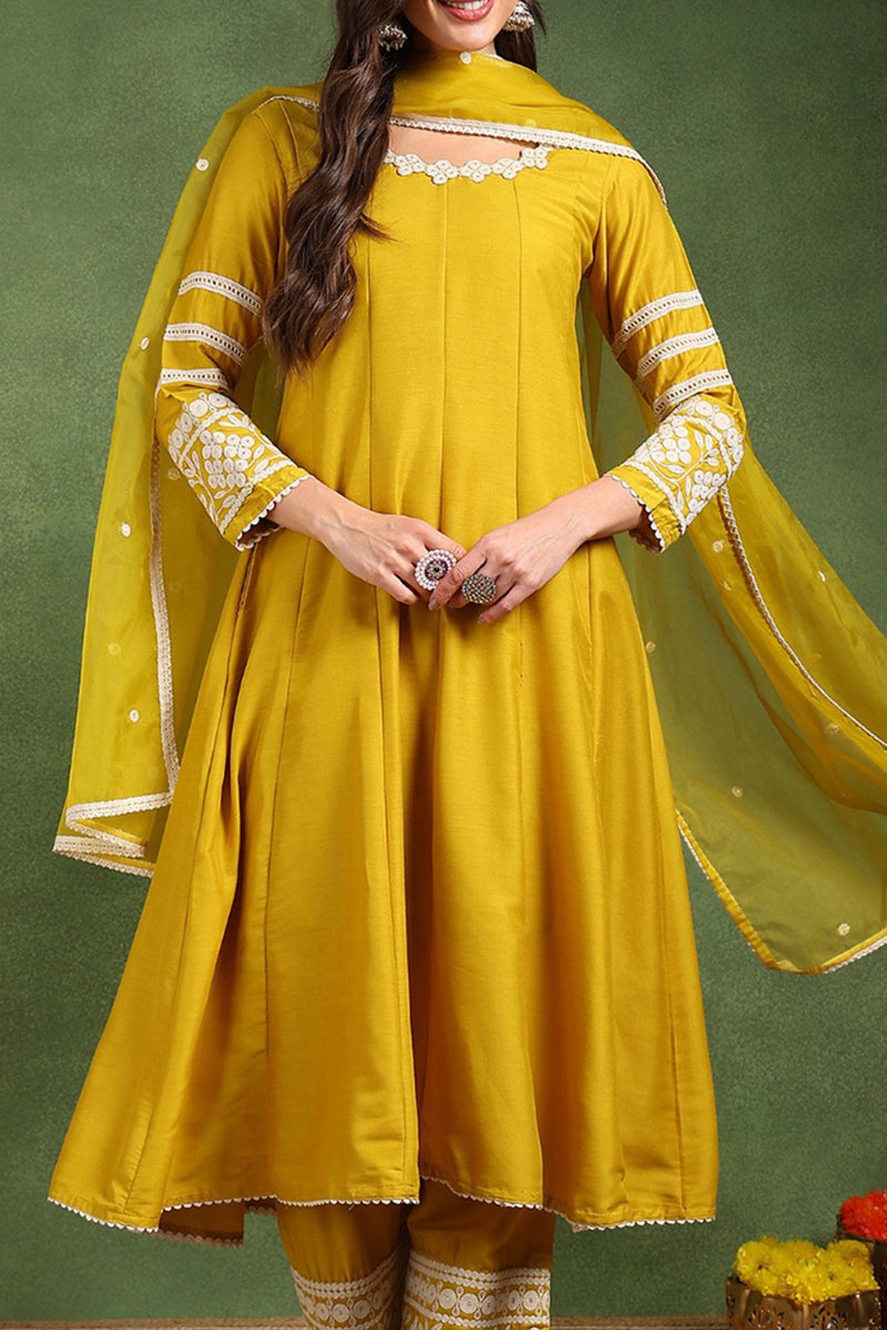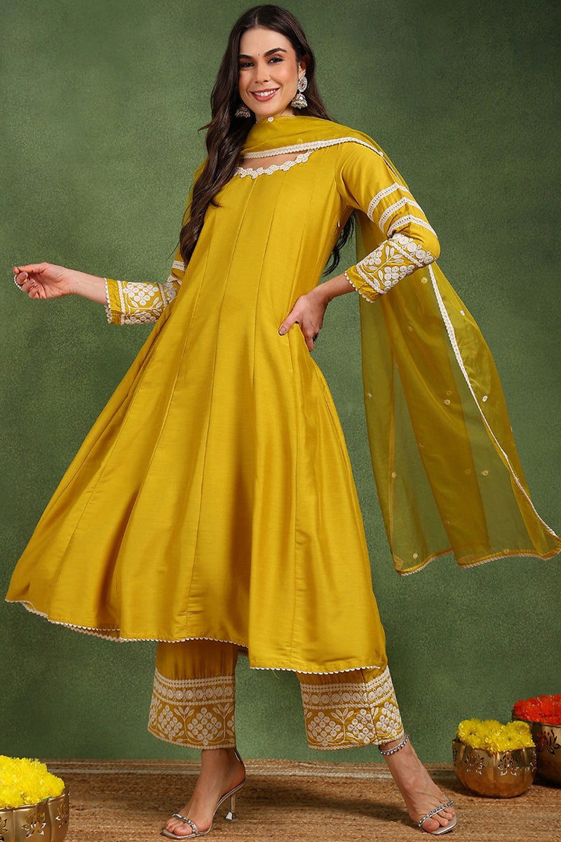 Yellow Silk Blend Solid Embroidered Anarkali Suit Set PKSKD2210