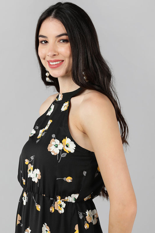 Black Georgette Floral Printed Maxi Dress VD1173