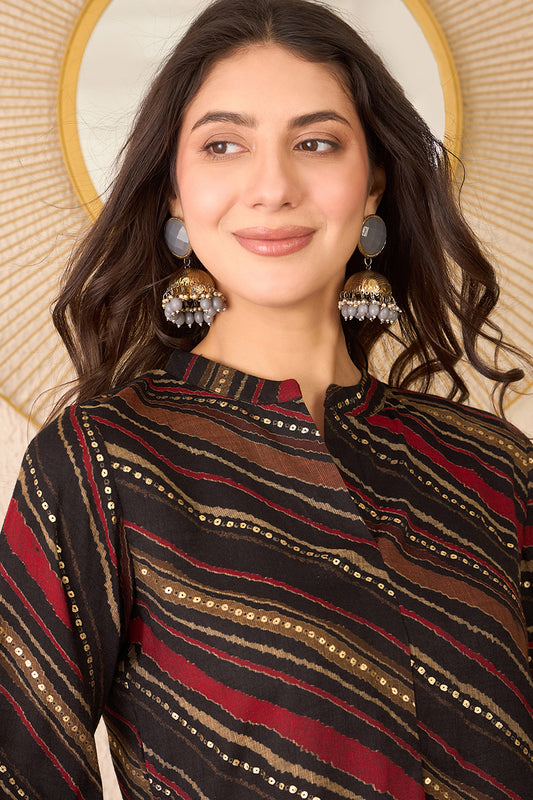 Black Cotton Blend Leheriya Printed Regular Top VT1382