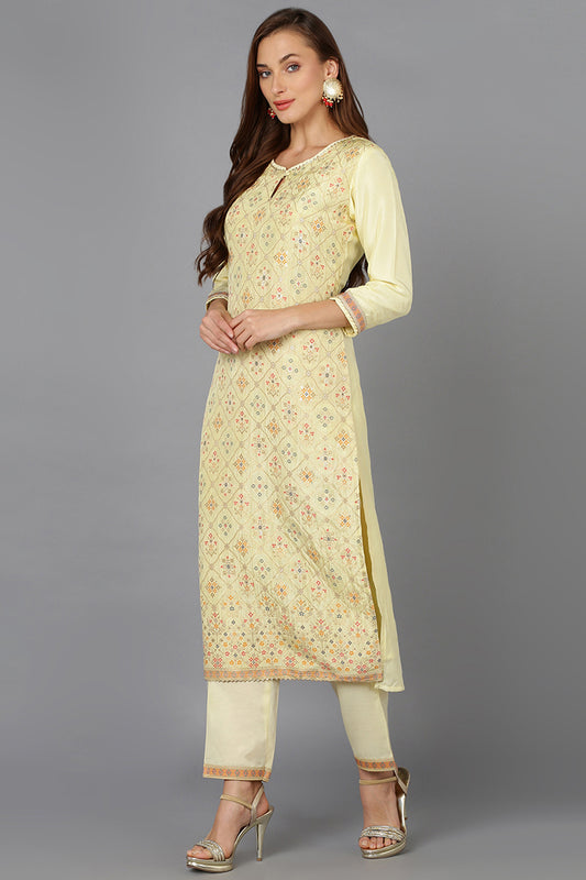 Yellow Rayon Blend Straight Suit Set VKSKD1042