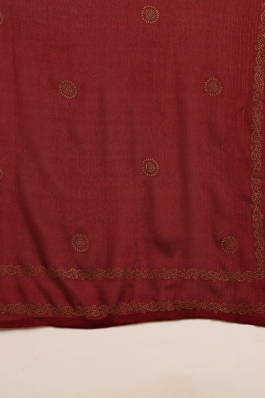 Maroon Silk Blend Anarkali Woven Design Kurta Pant With Dupatta PKSKD1915