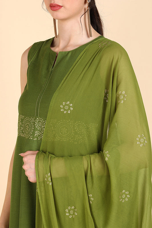 Olive Green Poly Silk Flared Suit Set PKSKD1413