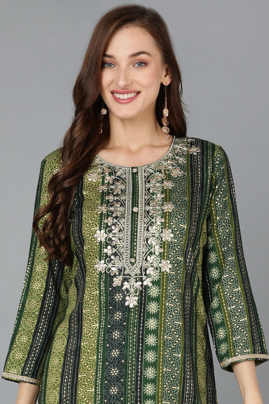 Viscose Rayon Green Bandhani Printed Straight Kurta VCK9274