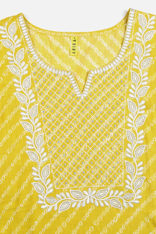 Yellow Cotton Bandhani Embroidered Straight Kurta VCK9038
