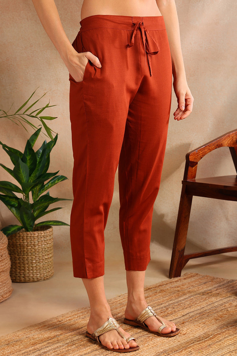 Burnt Orange Silk Blend Straight Suit Set VKSKD1797