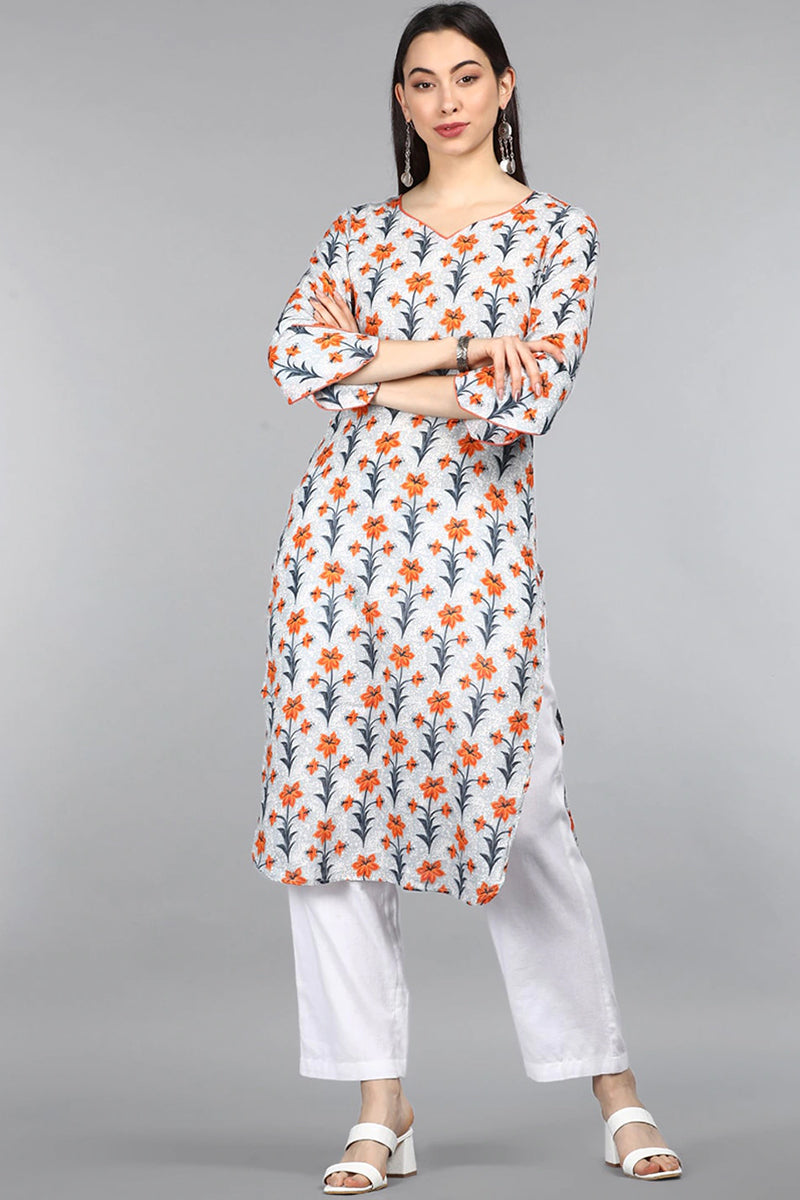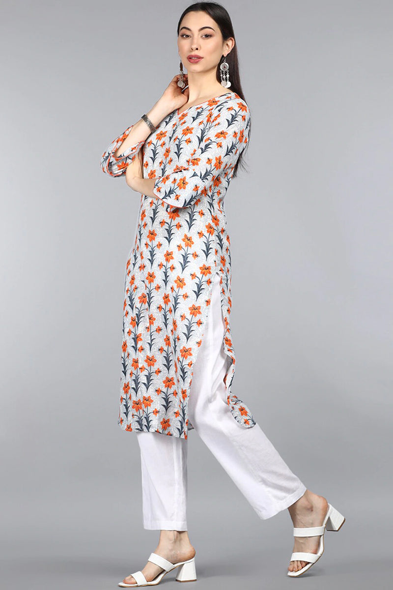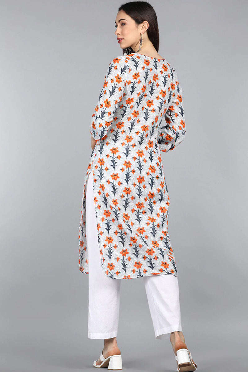 Make your boring off-white apparel a little more interesting with these printed festive wear for women. This off-white cotton kurta with floral prints, three-quarter sleeves, and a V-neckline adds a touch of elegance to your wardrobe. Get a beautiful ethnic look by pairing this white printed Kurti with black bottoms and juttis. This product is also completely biodegradable and organic. Make the switch to sustainable clothing today. Shop online now for this amazing festive season Kurti for women.