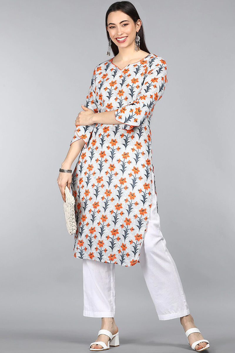 Women Cotton Trendy Festive Wear Off White Printed Kurti VCK1473