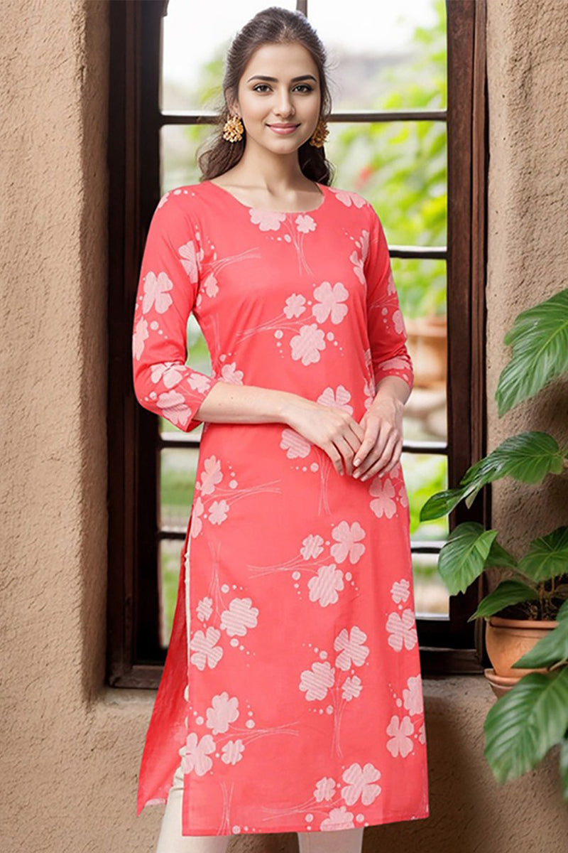 Ace a vivacious look every time you step out with Ahika’s beautiful and elegant pink cotton Kurti. The pink cotton material of the Kurti is extremely soft to the touch and lightweight too. It features floral prints, a round neckline, three-quarter sleeves, and a straight hemline. You can dress up in this Kurti for your next family occasion or office event by pairing it up with white leggings and minimal jewellery.