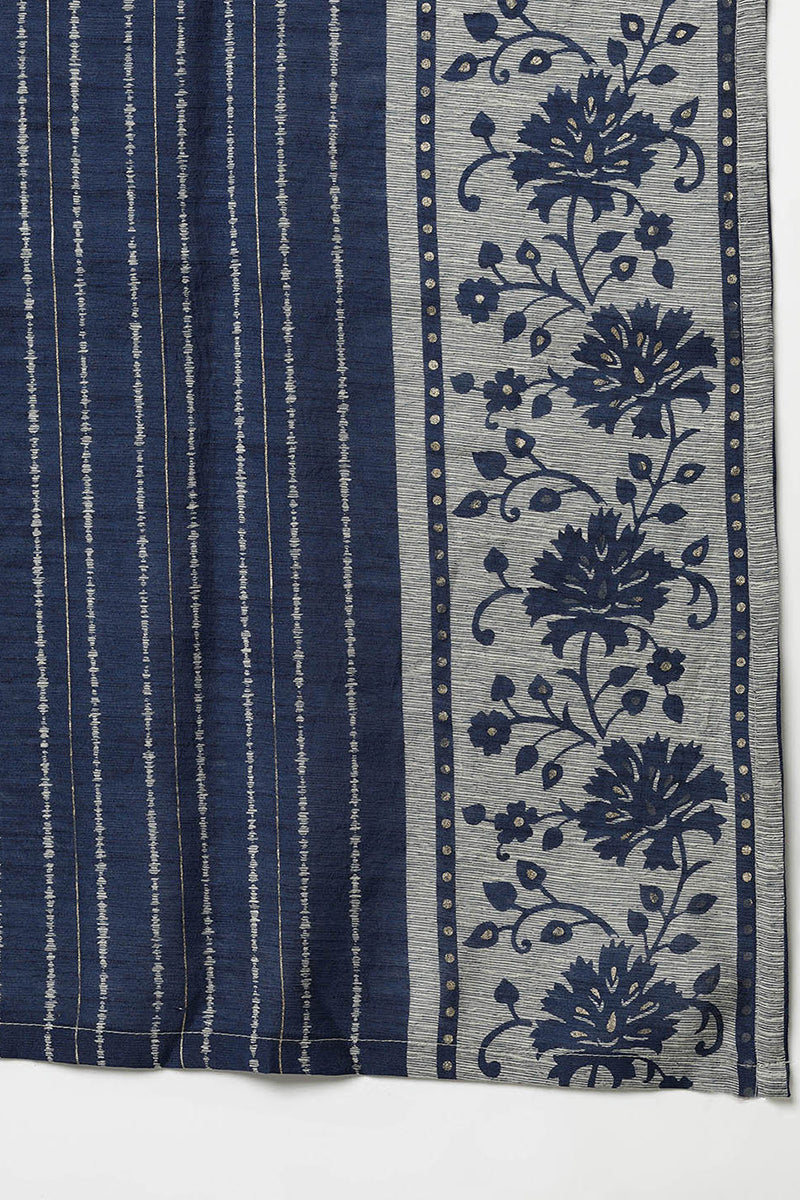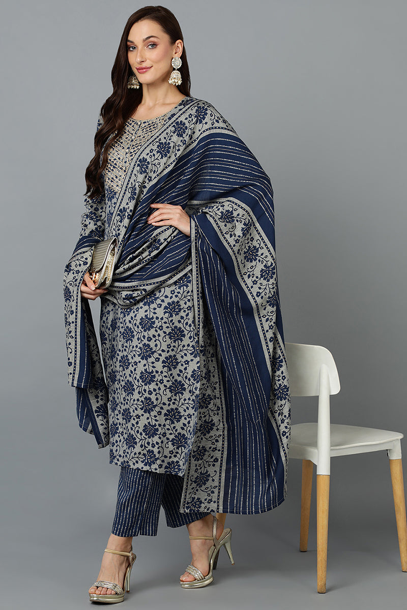 Grey, gold-toned & navy blue Kurta with Trousers with dupatta