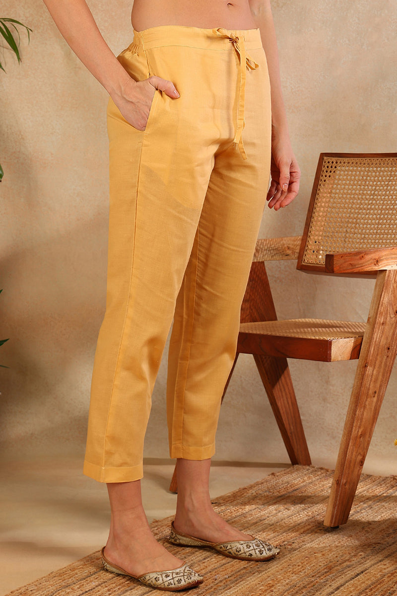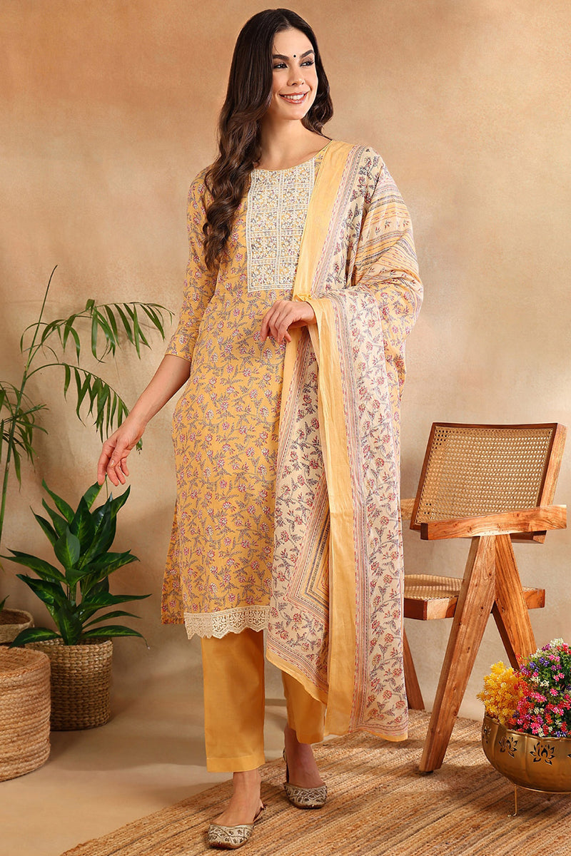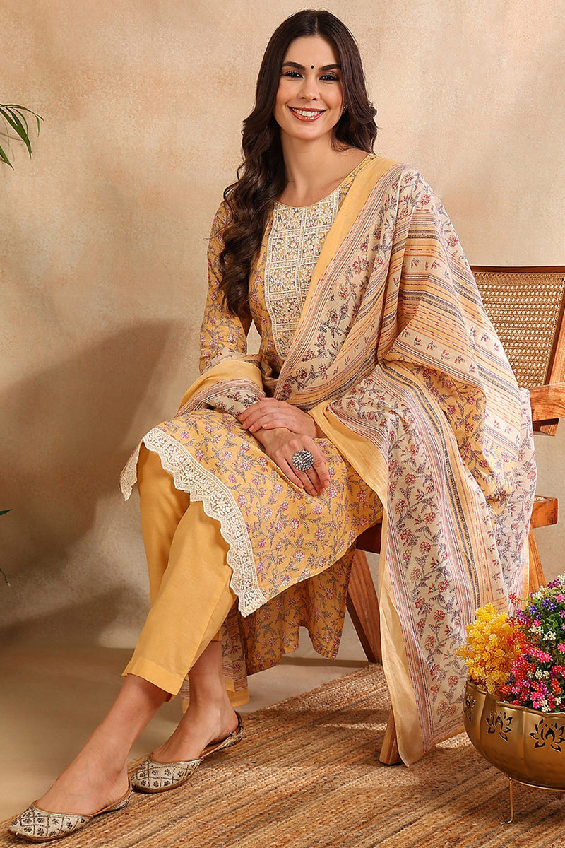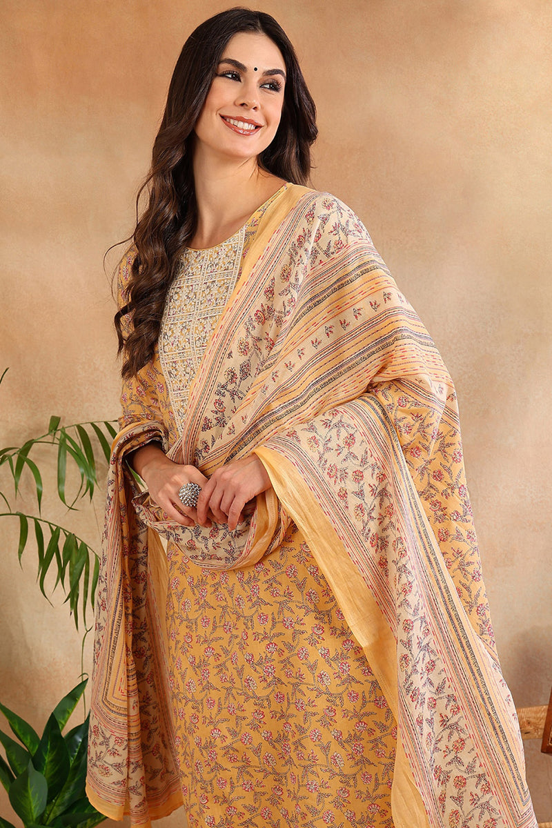 Yellow embroidered Kurta with Trousers with dupatta
