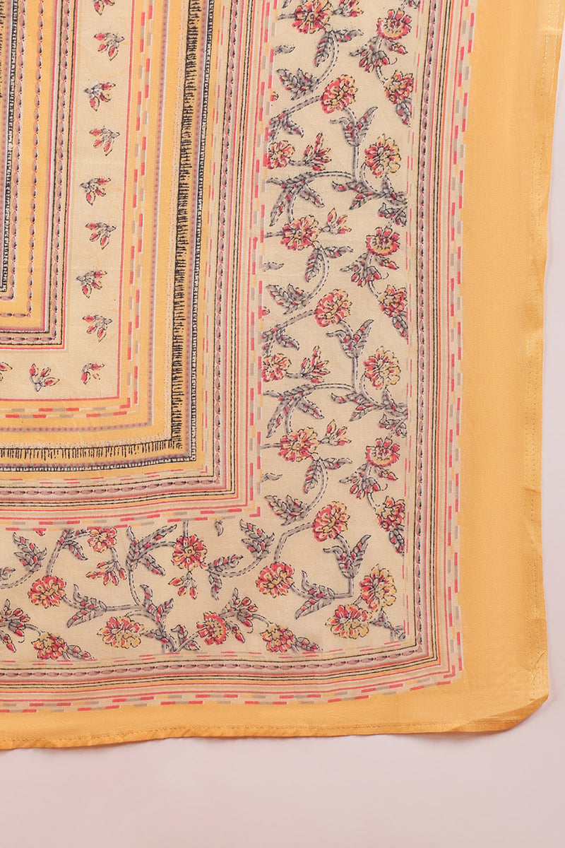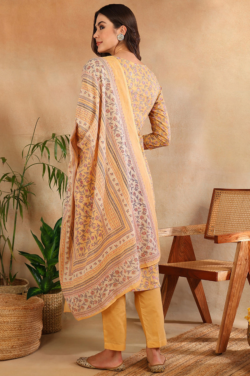 Cotton Blend Peach Printed Straight Kurta Pant With Dupatta VKSKD1901