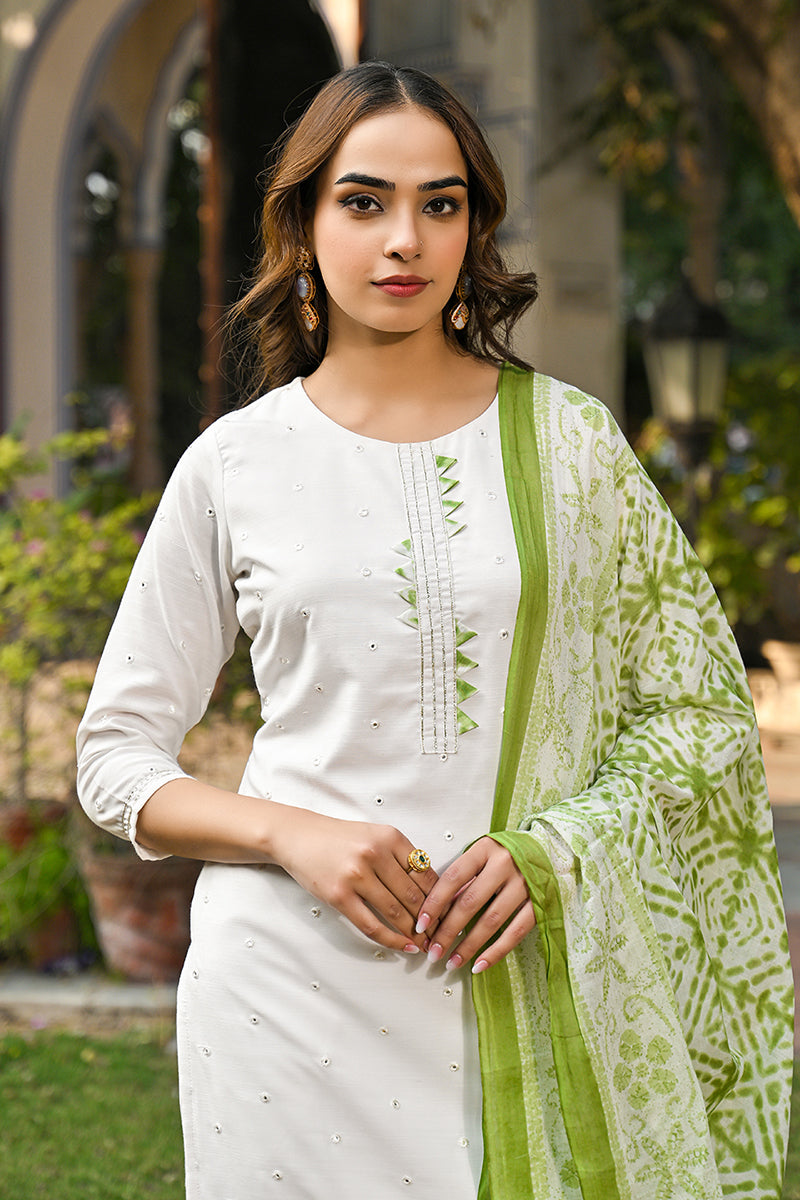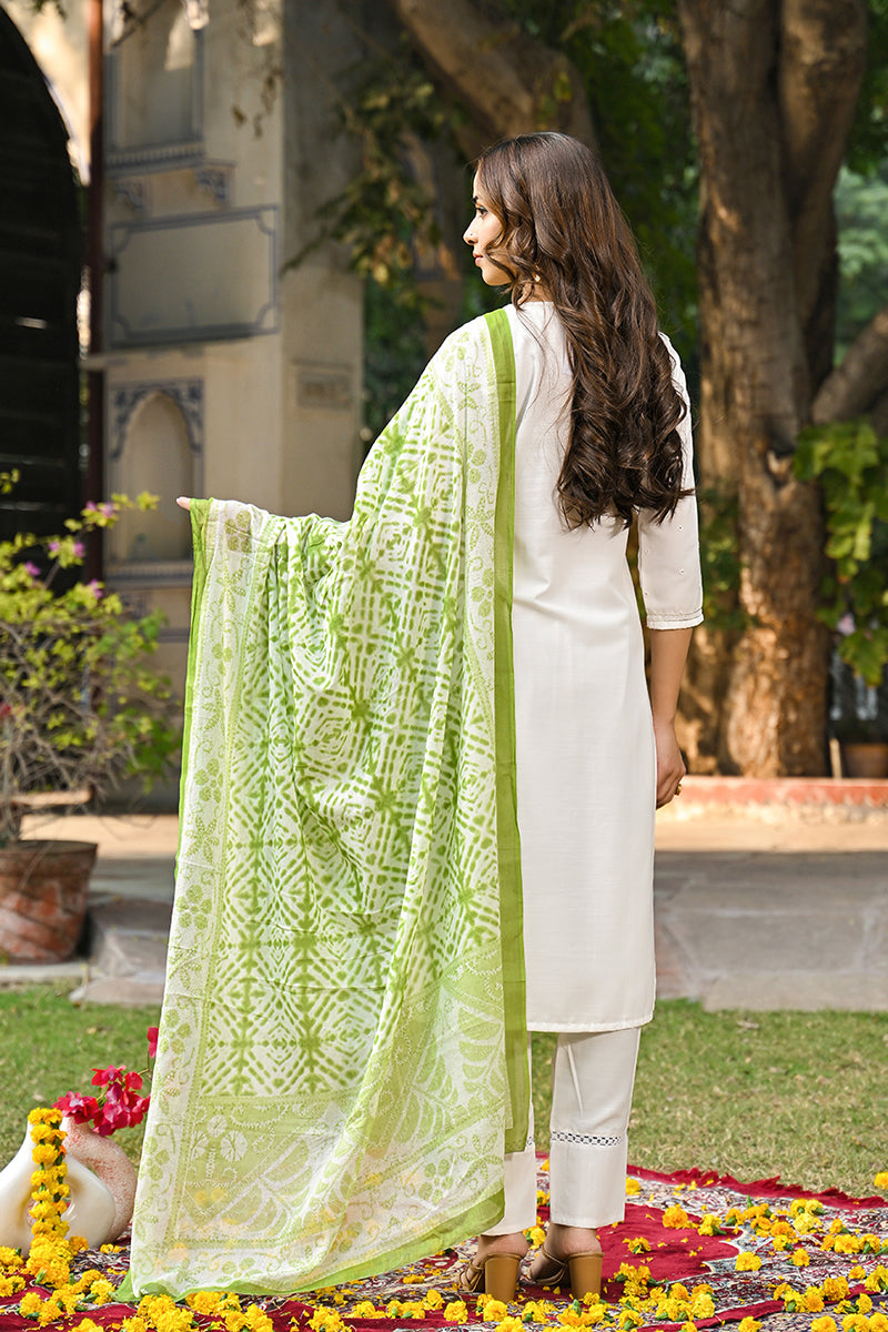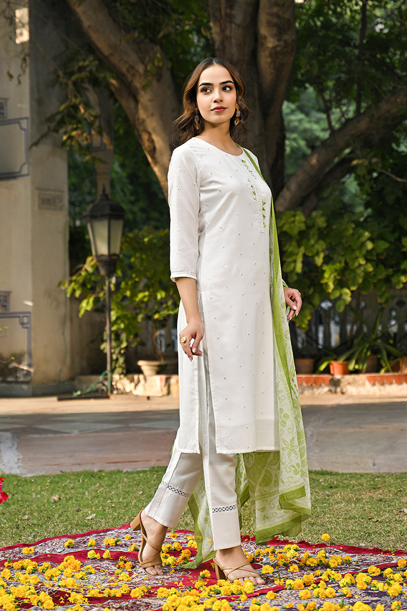 Brighten up your wardrobe with this Sea White colour Rayon Blend Solid embroidered Straight Trouser Suit Set. Designed with a soft and breathable Rayon Blend, this vibrant ensemble features a straight-cut kurta adorned with beautiful Solid embroidered, paired with comfortable trousers and a matching dupatta. Perfect for casual outings, festive celebrations, or summer gatherings, this set offers a stylish yet effortless look.
