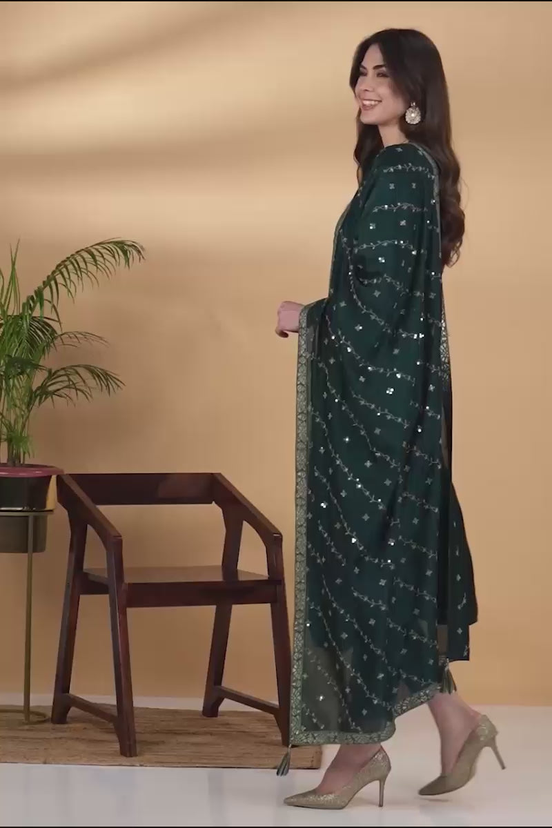 Green Silk Blend Embroidered Straight Suit Set PKSKD1818