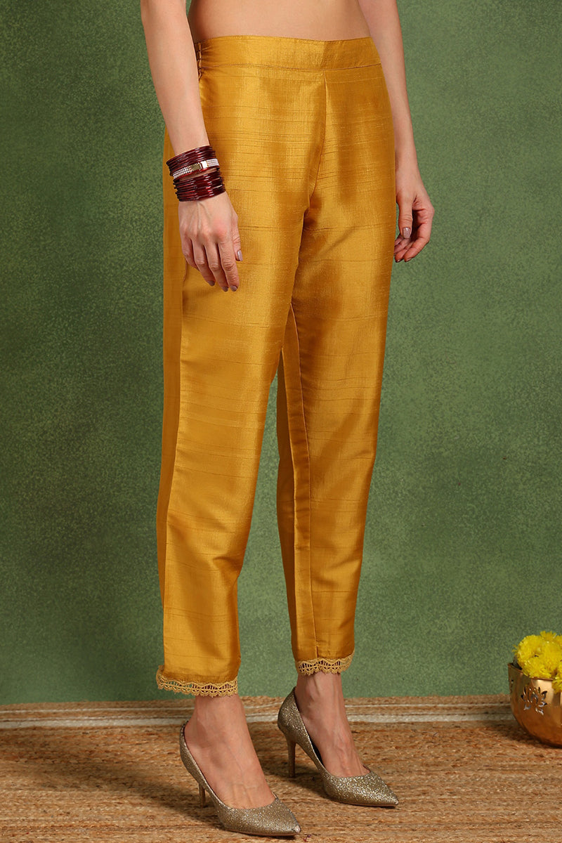 Brighten up your wardrobe with this Mustard yellow Color Silk Blend embroidered Straight Trouser Suit Set. Designed with a soft and breathable Silk Blend, this vibrant ensemble features a straight-cut kurta adorned with beautiful embroidered , paired with comfortable trousers and a matching dupatta. Perfect for casual outings, festive celebrations, or summer gatherings, this set offers a stylish yet effortless look.