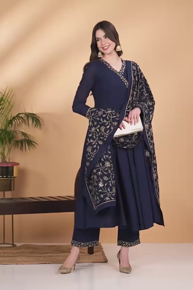Prussian Blue Poly Georgette Angrakha Pant With Dupatta PKSKD1910
