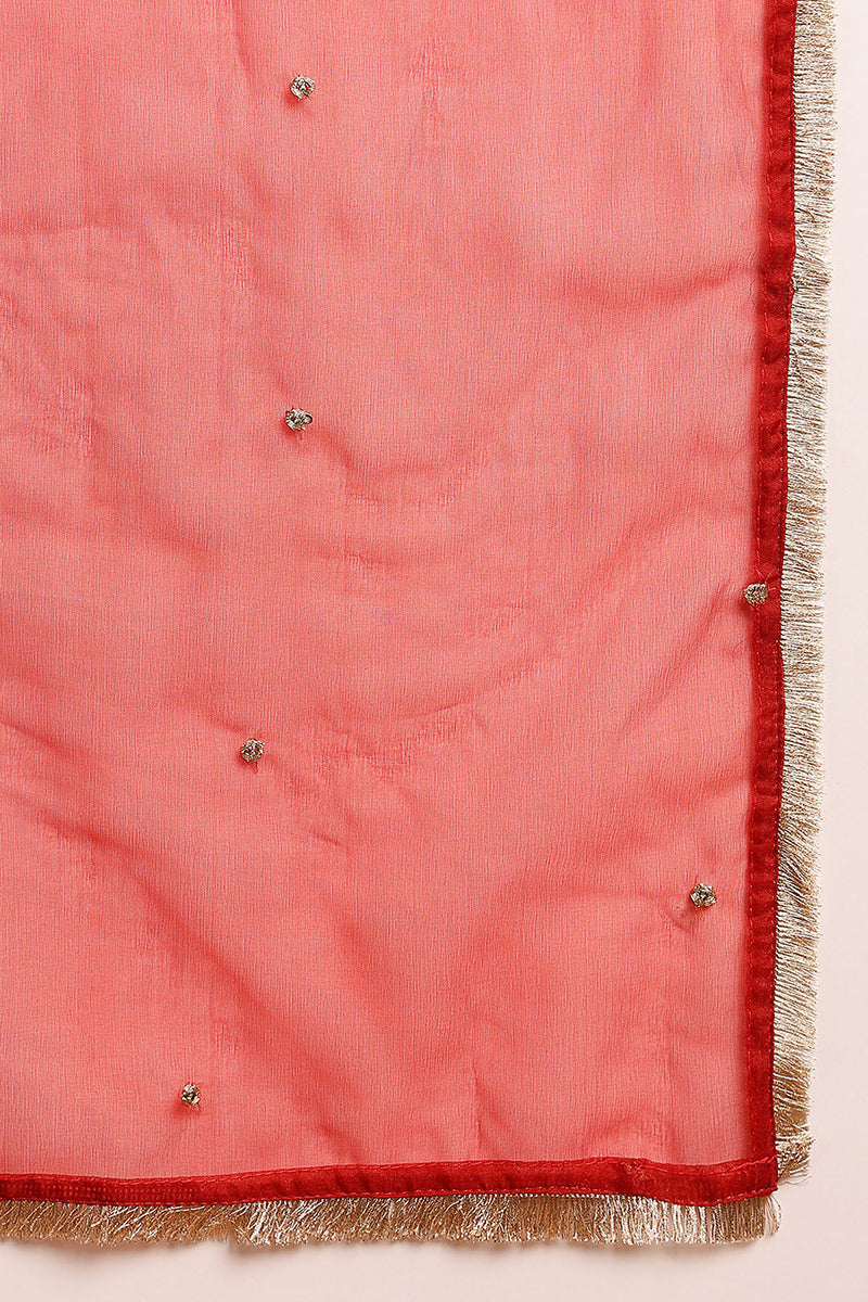 Red Silk Blend Solid Embroidered A-Line Trouser Bottom Suit Set PKSKD2535RED