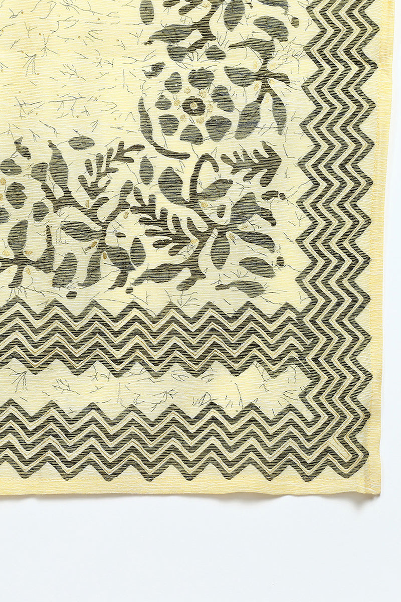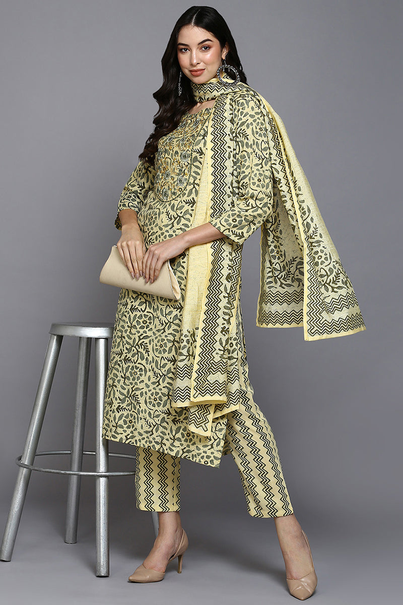 Yellow Silk Blend Floral Straight Suit Set VKSKD1865
