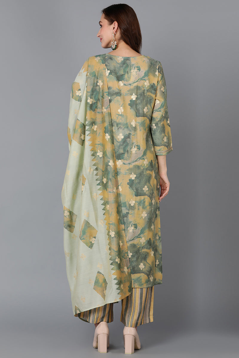 Yellow Silk Blend Straight Kurta Palazzo With Dupatta PKSKD1856