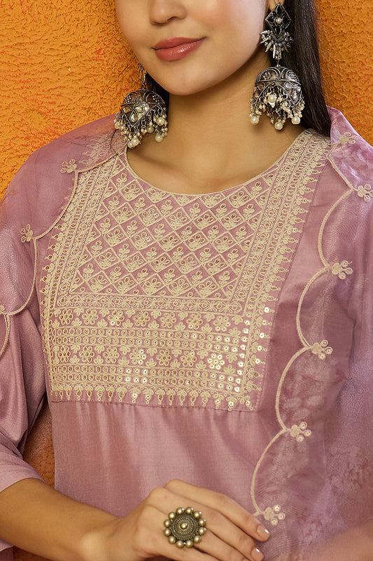 Lavender Poly Silk Straight Kurta Pant With Dupatta PKSKD1508