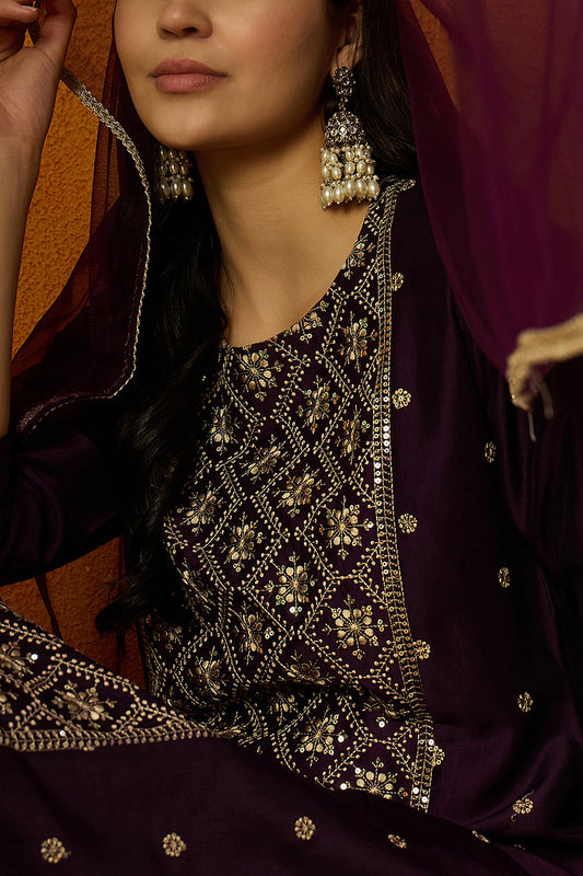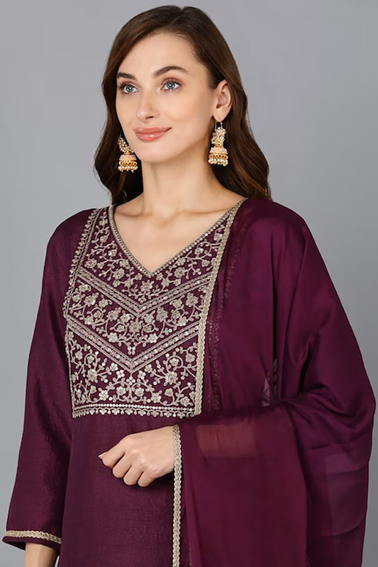 Purple Silk Blend Ethnic Motifs Straight Suit Set PKSKD1826