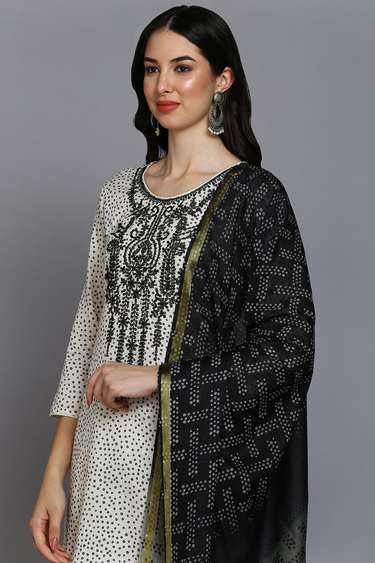 Off White Cotton Bandhani Straight Suit Set VKSKD1870