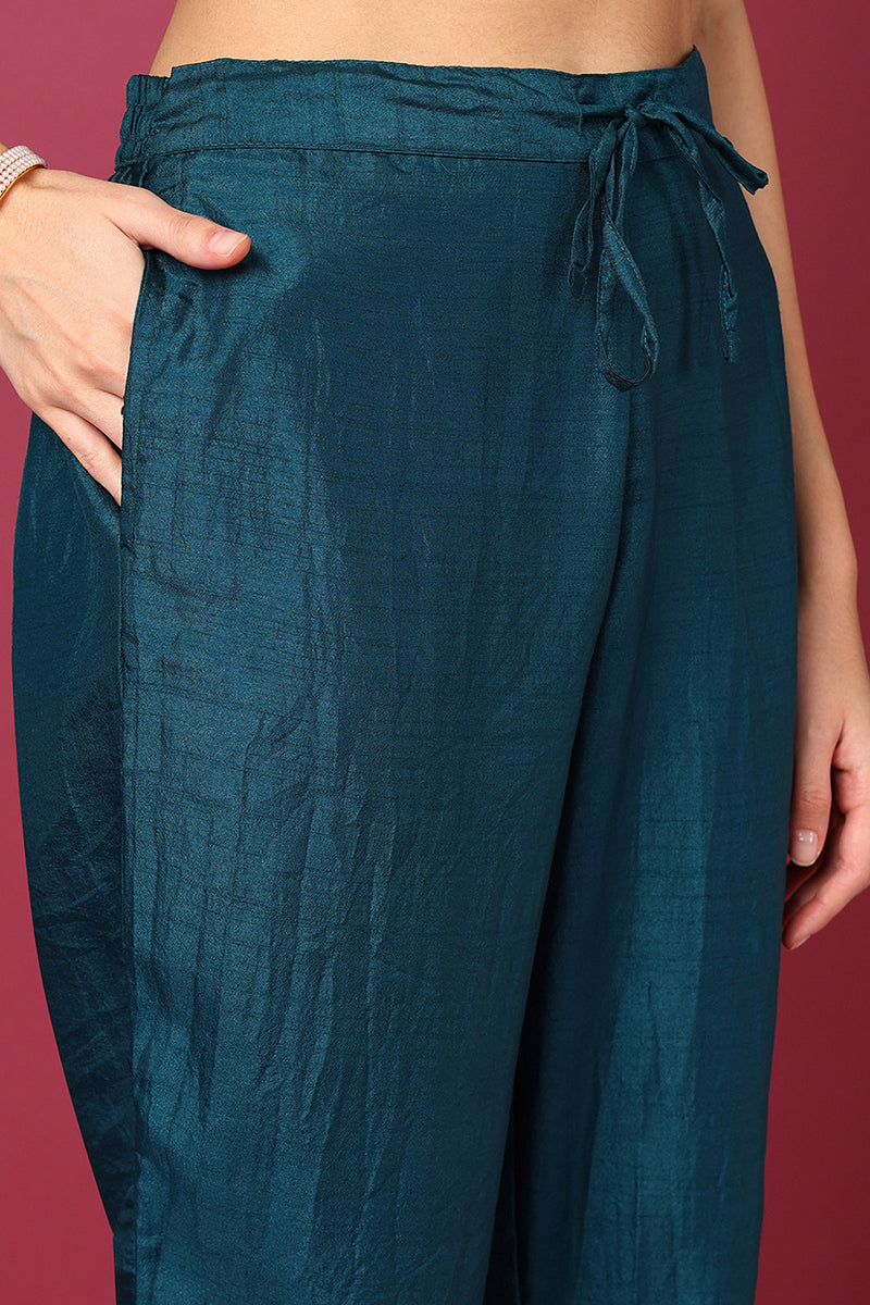 Teal Silk Blend Ethnic Motifs Woven Design Straight Suit Set PKSKD1780