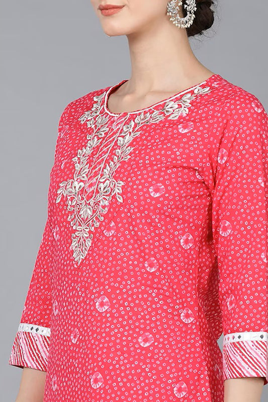 Pink Pure Cotton Bandhani Straight Suit Set VKSKD1636