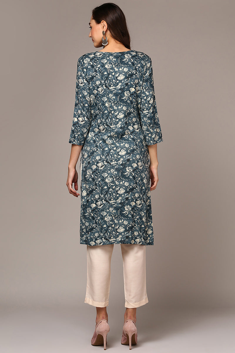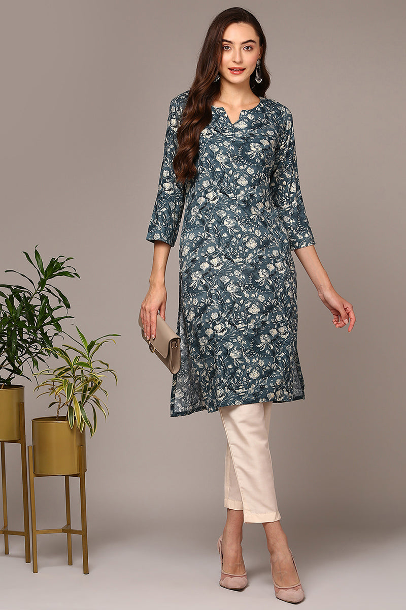 Blue Viscose Rayon Floral Printed Straight Kurta VCK9475