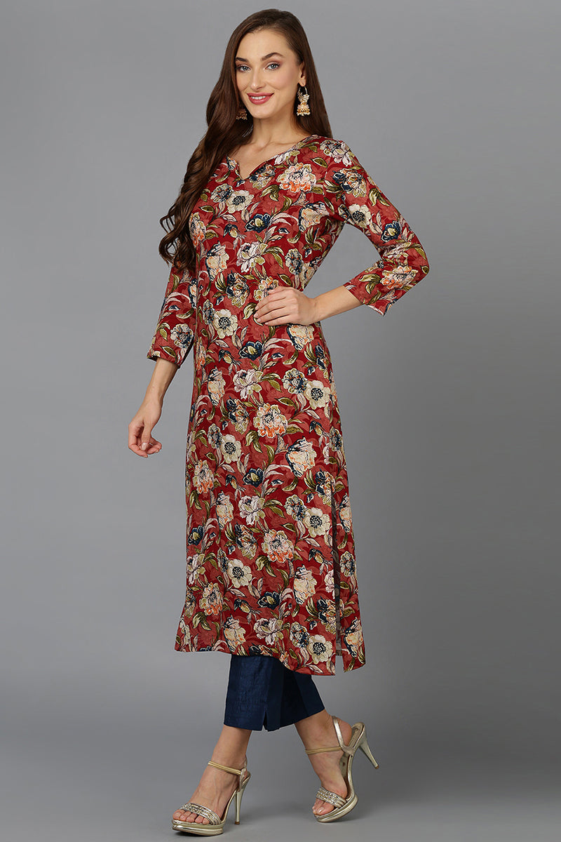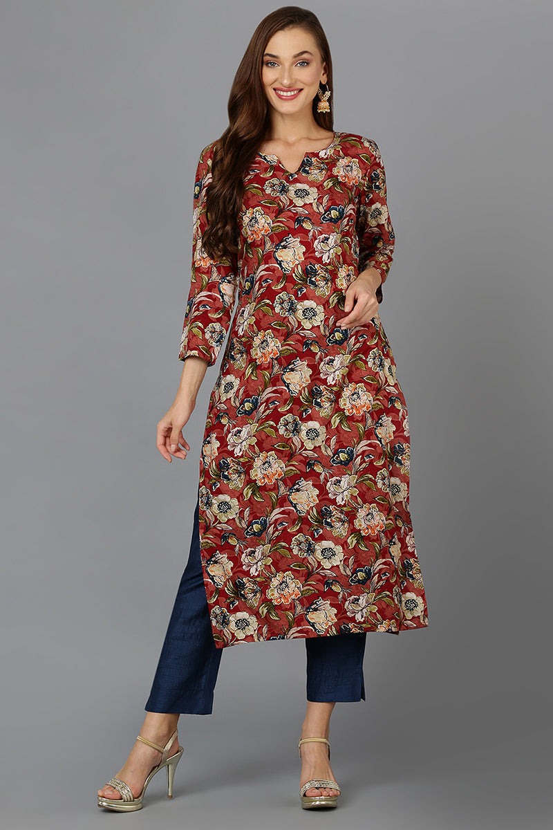 Cotton Blend Maroon Floral Printed Straight Kurta VCK9203