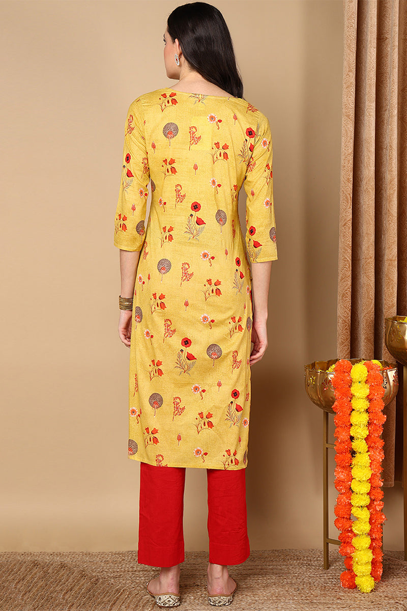 Mustard Yellow & Red Floral Print Straight Kurta VCK1595