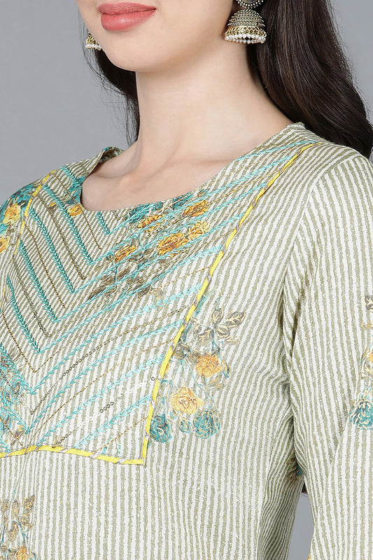 Green Cotton Flared Kurta VCK8239