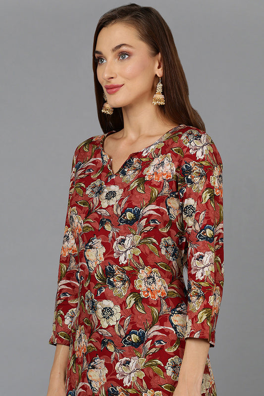 Cotton Blend Maroon Floral Printed Straight Kurta VCK9203